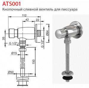 Кнопочный сливной вентиль для писсуара, арт. ATS001