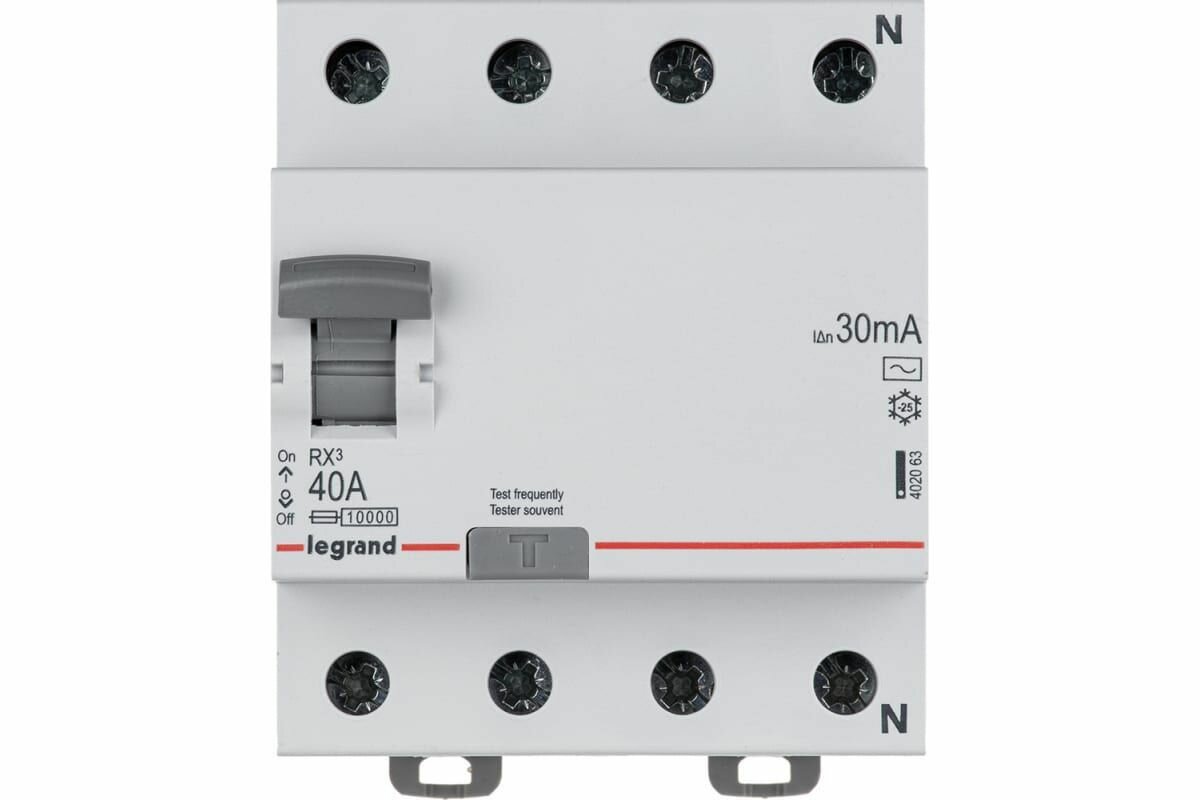 Устройство защитного отключения 4П 40А 30мА Legrand ВДТ RX3 тип АС 402063