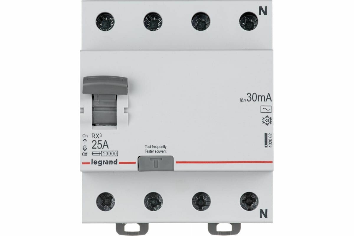 Устройство защитного отключения (УЗО) RX3 25А 4П четырехполюсный C 30мА 402062 Legrand