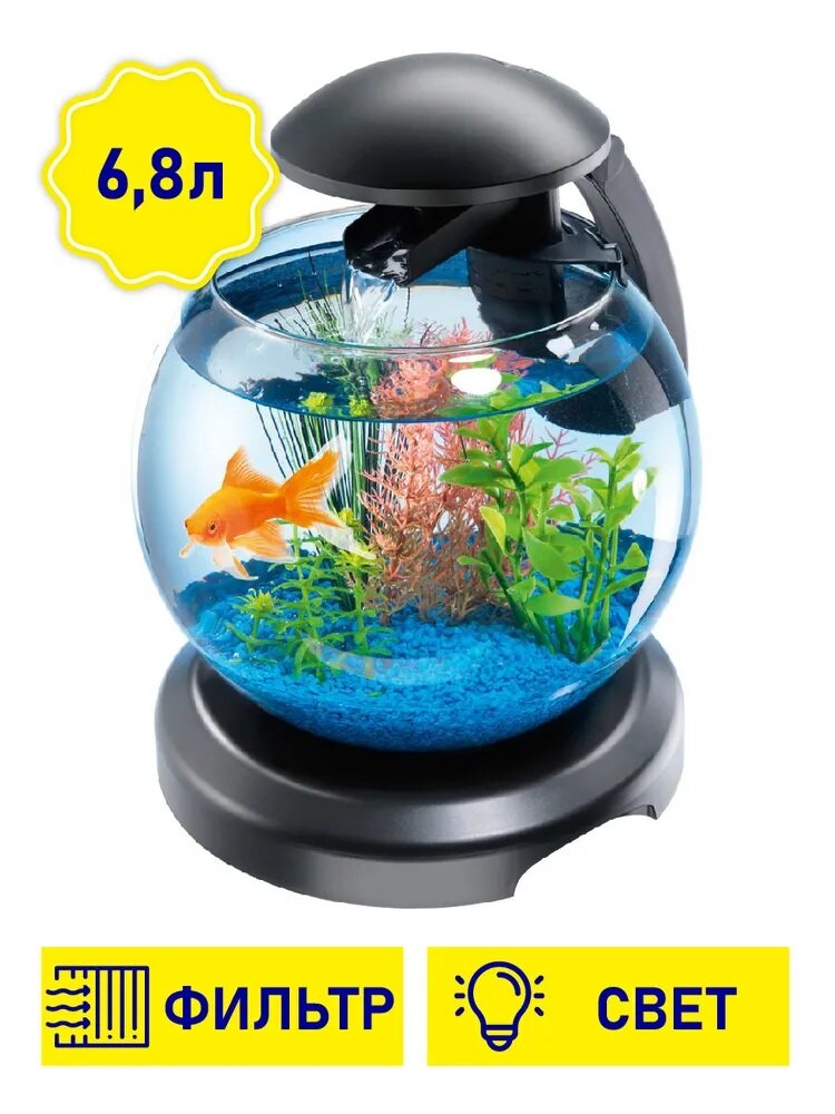 Аквариум Tetra Cascade Globe круглый с LED светильником 6,8 литра черный (1 шт)