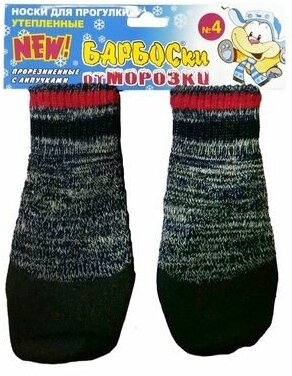Барбоски 154004 Носки д/собак №4 для прогулки утепленные, прорезиненные, с липучками, серые
