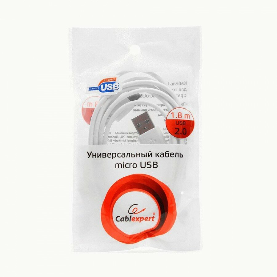Кабель USB 2.0 A - micro USB 5pin (m-m), 1,8м, Pro CC-mUSB2-AMBM-6W белый, пакет Cablexpert