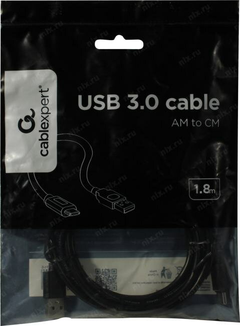 Кабель Cablexpert USB - USB Type-C (CCP-USB2-AMCM-6), 1.8 м, черный
