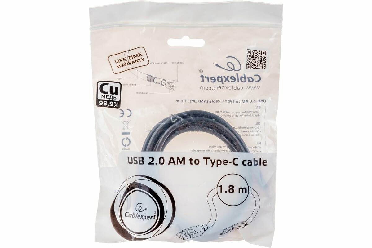 Cablexpert CCP-USB2-AMCM-6 Кабель USB AM/USB Type-C, 1.8 м, черный