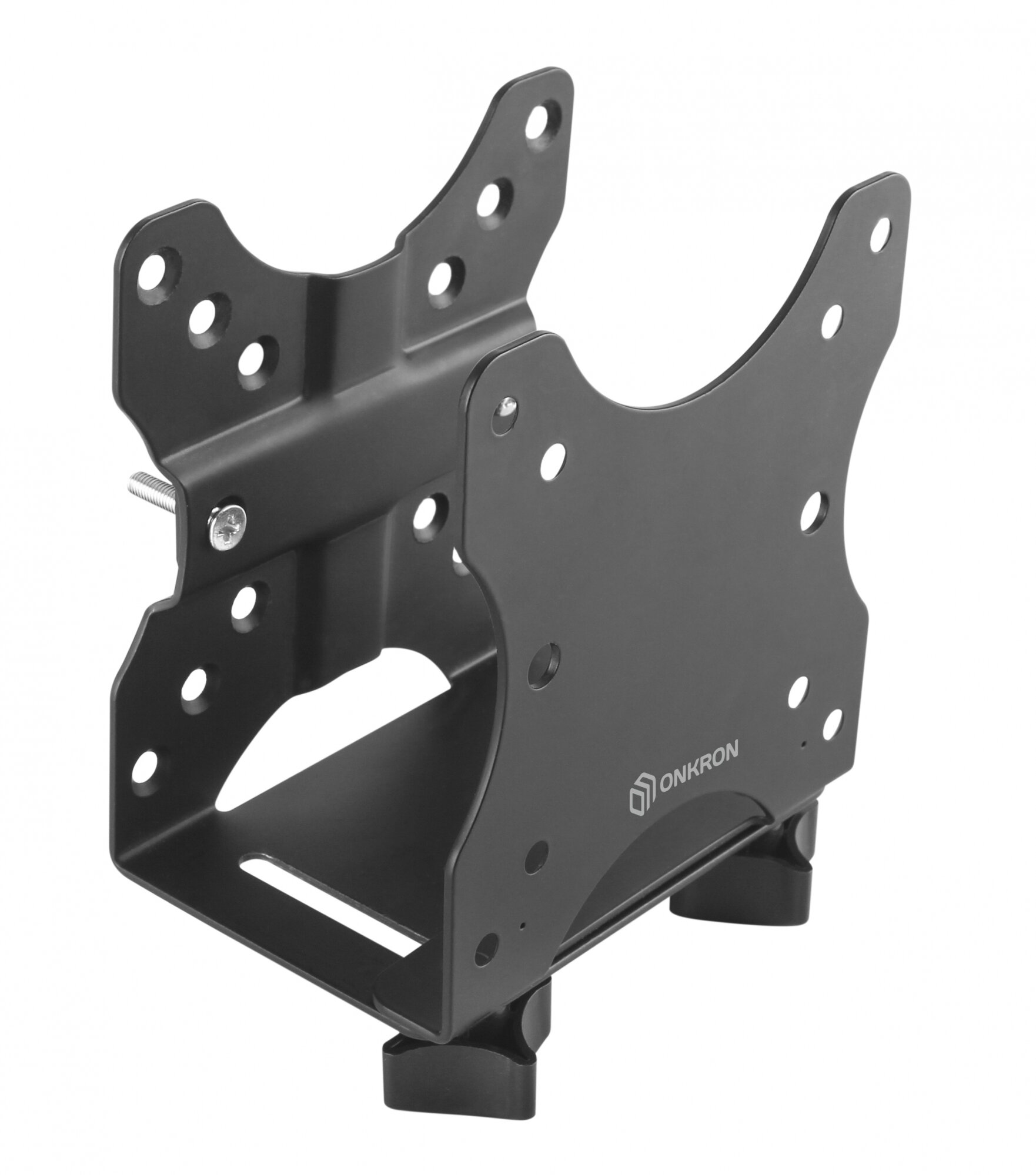 Крепление универсальное для mini PC ONKRON/ макс нагрузка 5кг, крепления на VESA: 75x75, 100x100, высота mini PC: 17~70мм, ширина и длина mini PC: без ограничений, возможность установки: на стену, под стол, к VESA креплениям монитора, между монитором и кр
