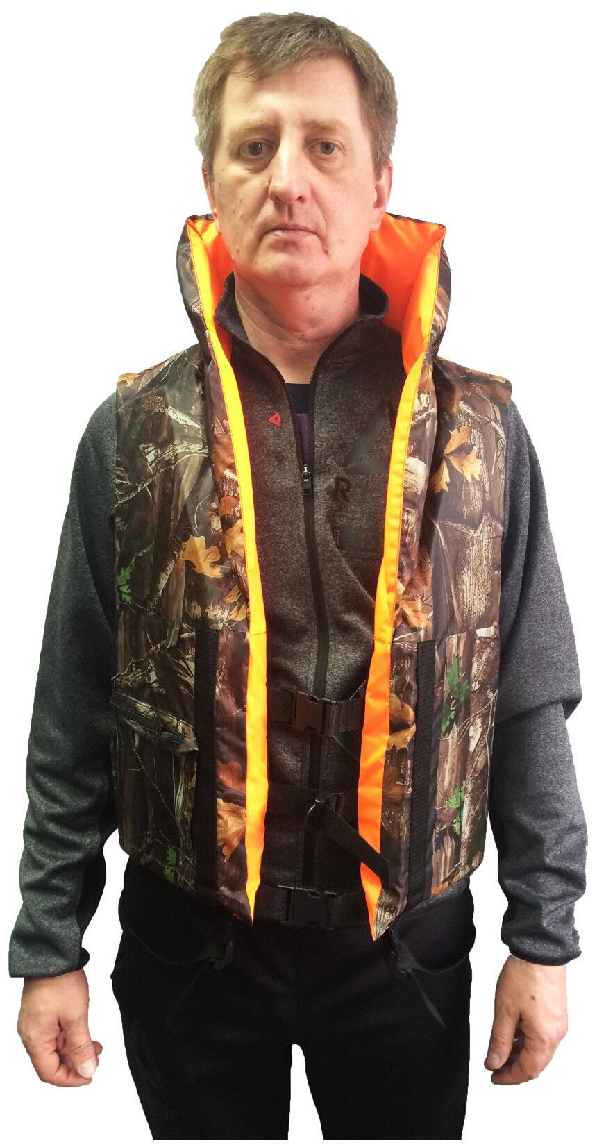 Жилет с воротником спасательный двусторонний Huntsman (Восток) ПР ЖС-002, размер 48-52, до 80 кг, лес/оранжевый