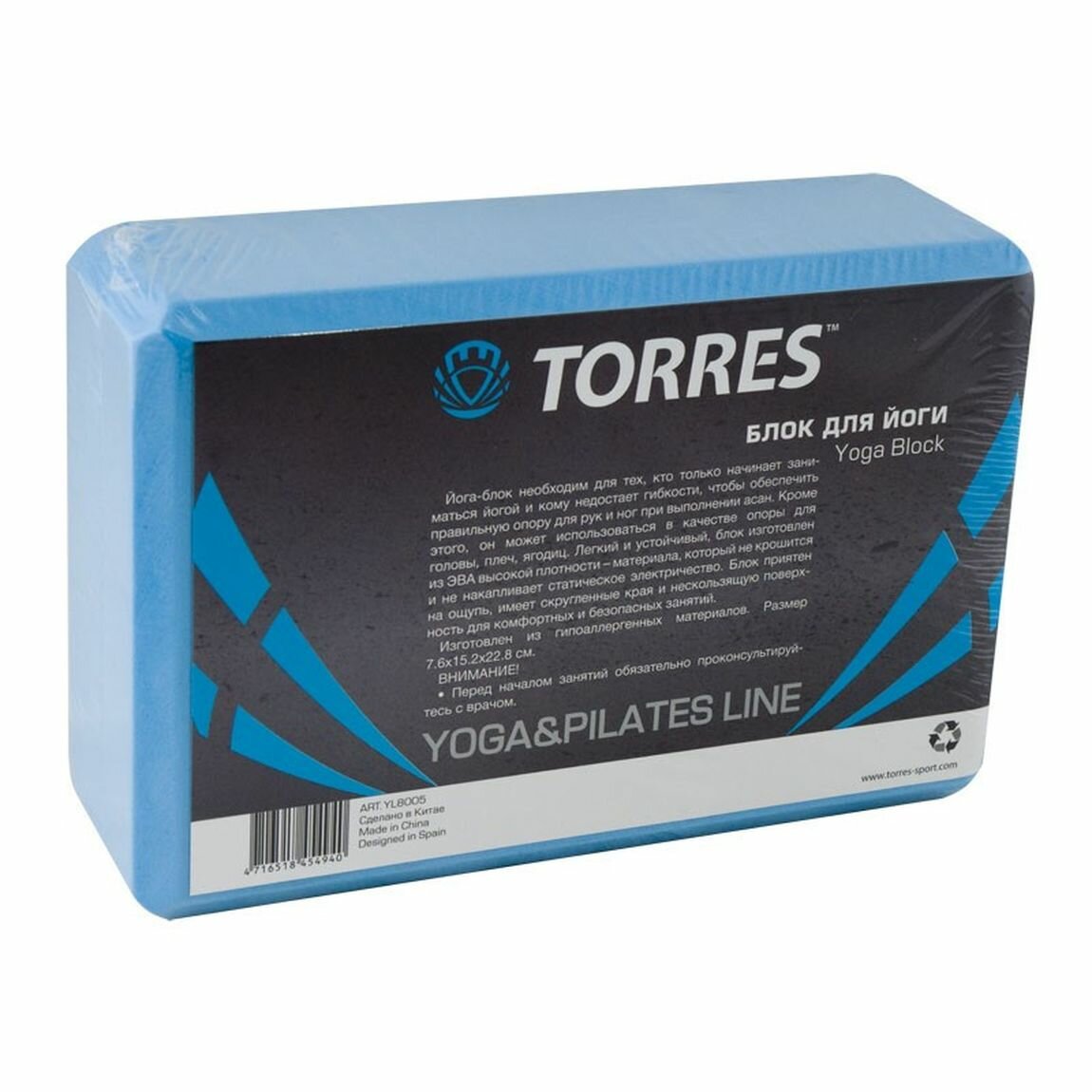 Блок для йоги "TORRES", YL8005B, 8x15x23 см