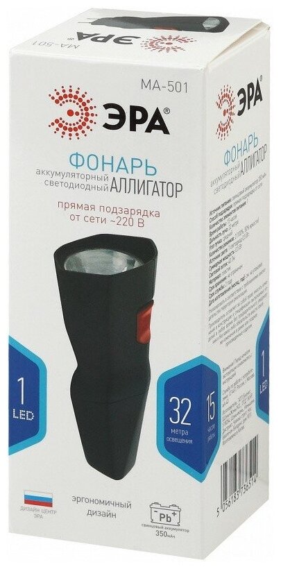 Фонарь Эра MA-501 аллигатор универсальны (SMD, 350мАч, прямая зарядка, упакован в коробку)