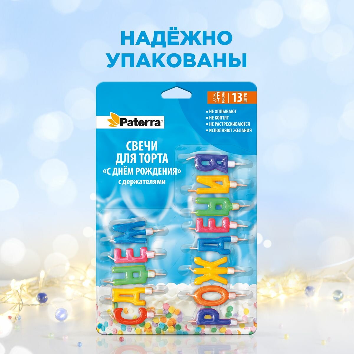 Свечи для торта PATERRA 13шт С днем рождения блистер