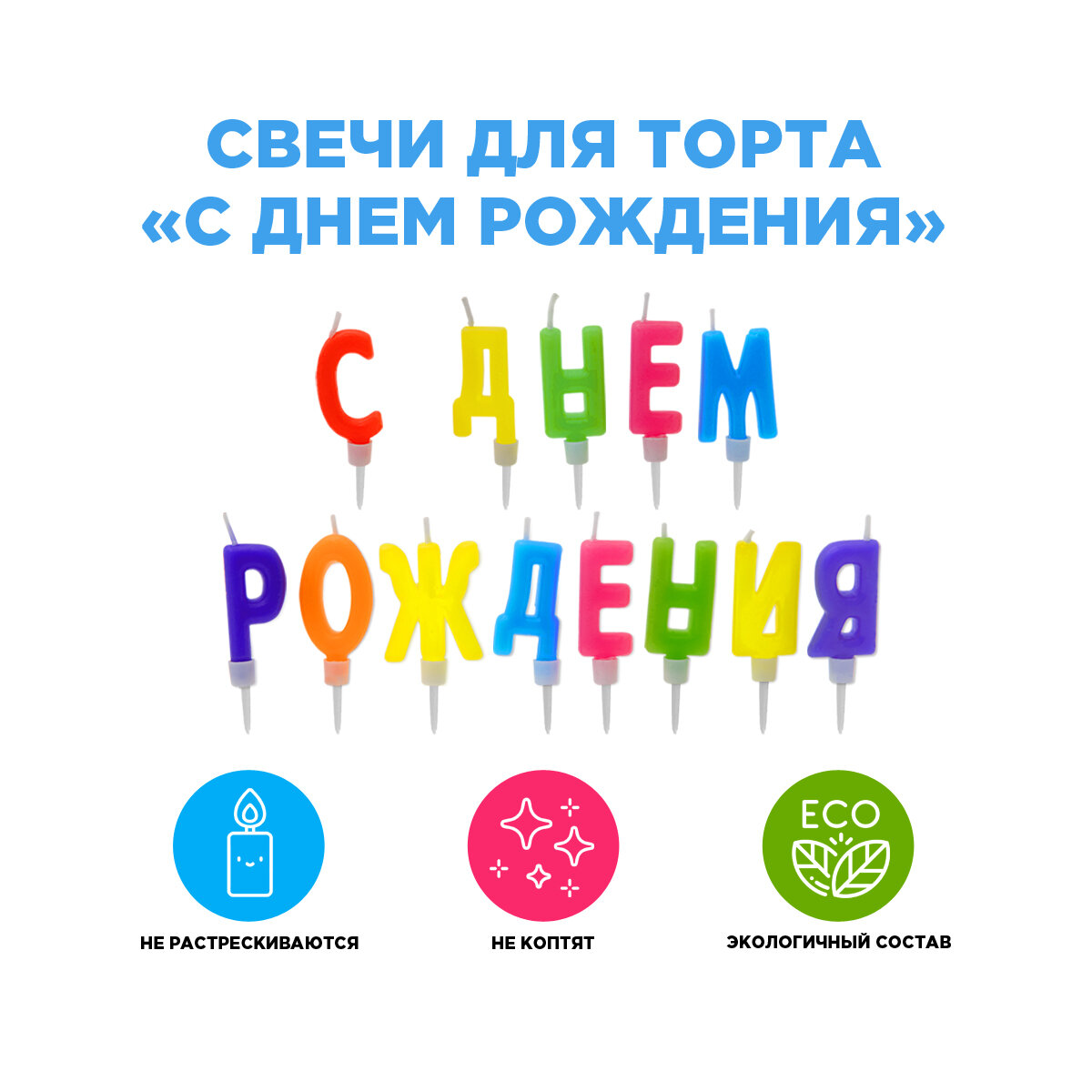 Купить Набор свечей для торта (надпись) "С днем рождения"