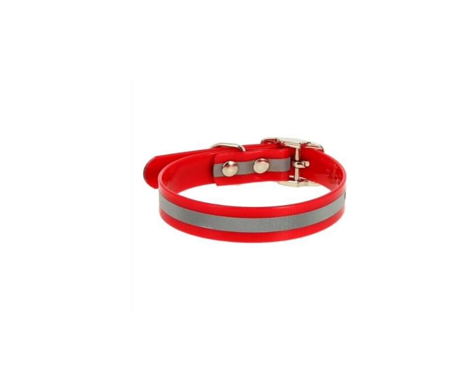 Ошейник (Каскад) из биотана со светоотражающей полосой шир. 20мм, обх. шеи. 25-35см, красный
