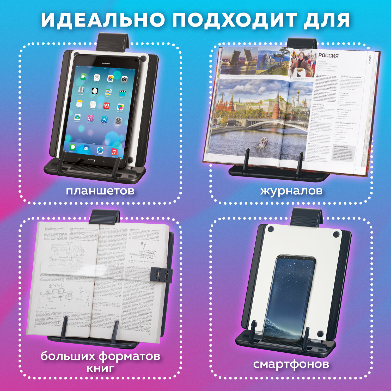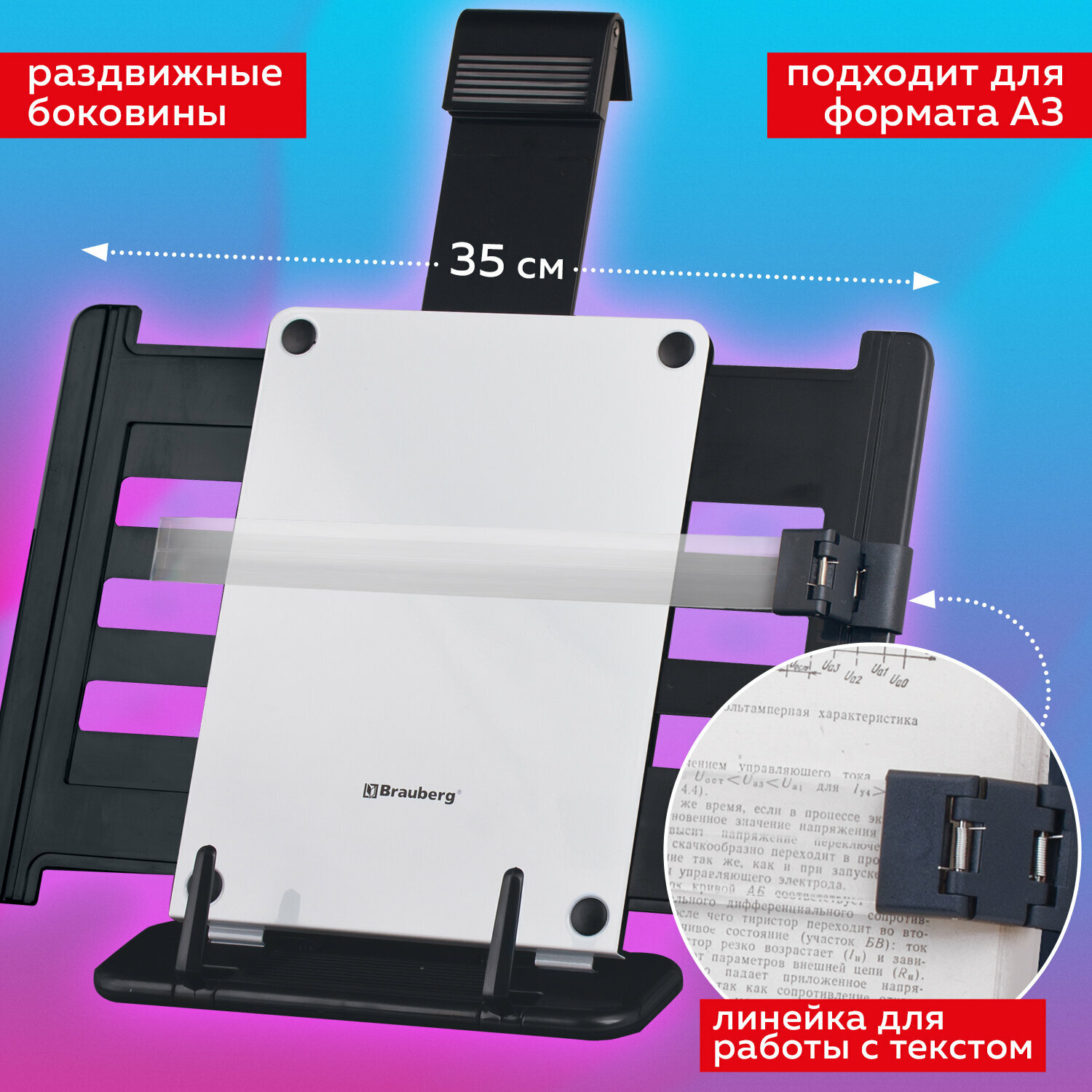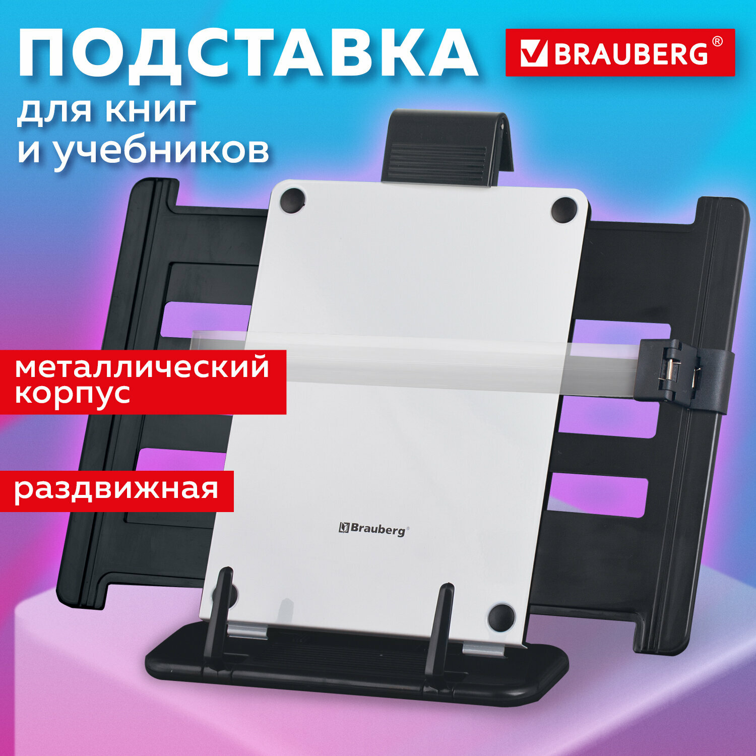 Купить Подставка для книг, учебников, журналов Brauberg, большая, регулируемый угол наклона, раздвижная