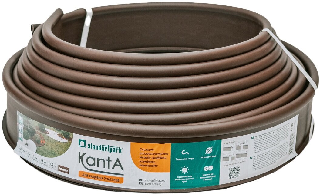 СохранитьБордюр садовый Стандартпарк Канта (Standartpark KANTA), коричневый, длина 10 м, высота 10 см, диаметр трубки 1,6 см интересное: