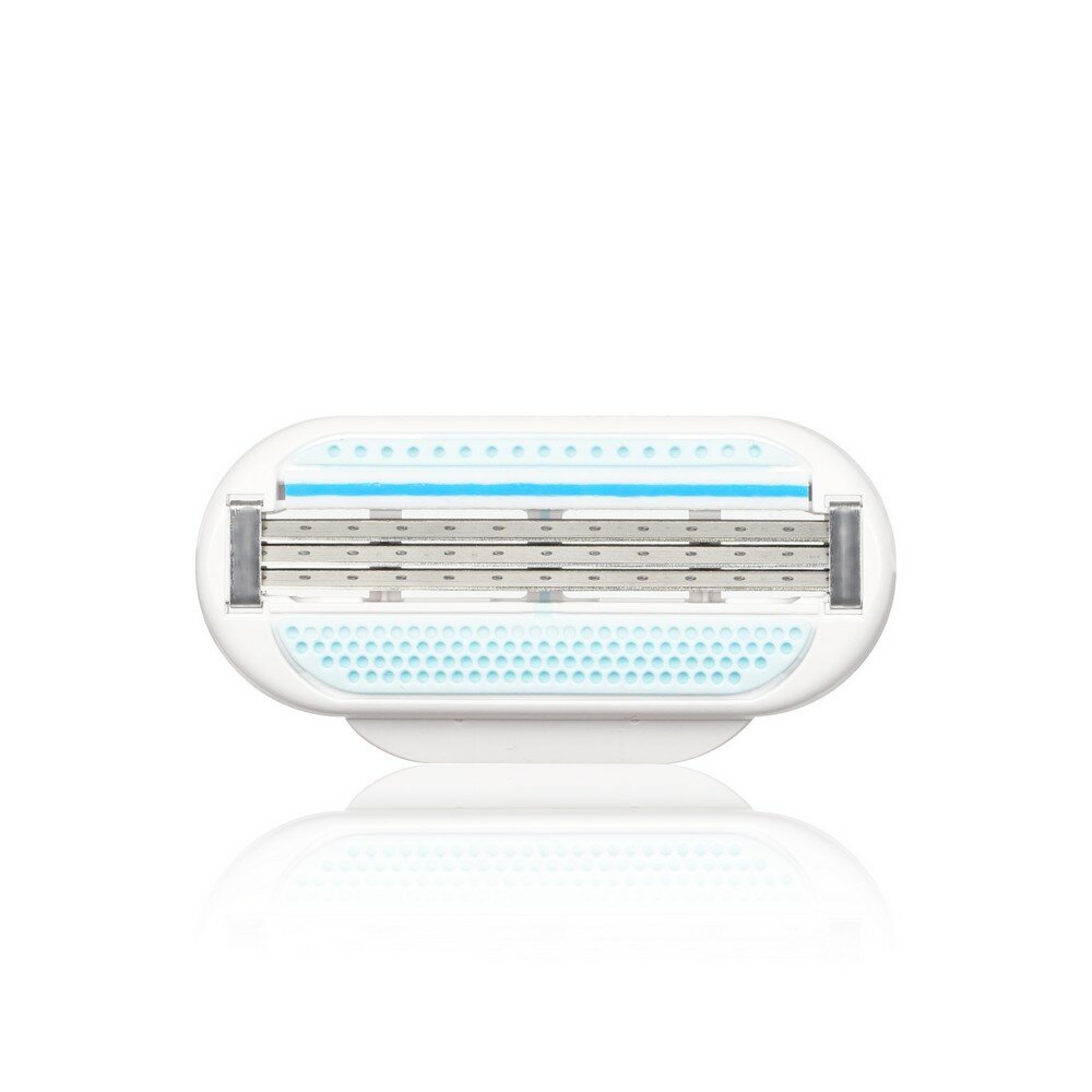 Ну что пока за два года использования написать свой опыт. Бритва имеет три лезвия.Которые расположены близко друг к другу.Так же имеется мягкие подушечки которые предназначены для разглаживается кожи и плотного прилегание станка.Синий индикатор который со временем использования исчезает даёт знать о затупленном лезвий и смене кассеты. Ручка очень удобная прорезиненная не выскальзывает в мокрых руках.Сменная кассета меняется очень легко.Да основание можно прикрепить сменную кассеты другого основания и подходят даже мужские. Хорошо скользит по коже, не оставляет за собой порезов и царапин |