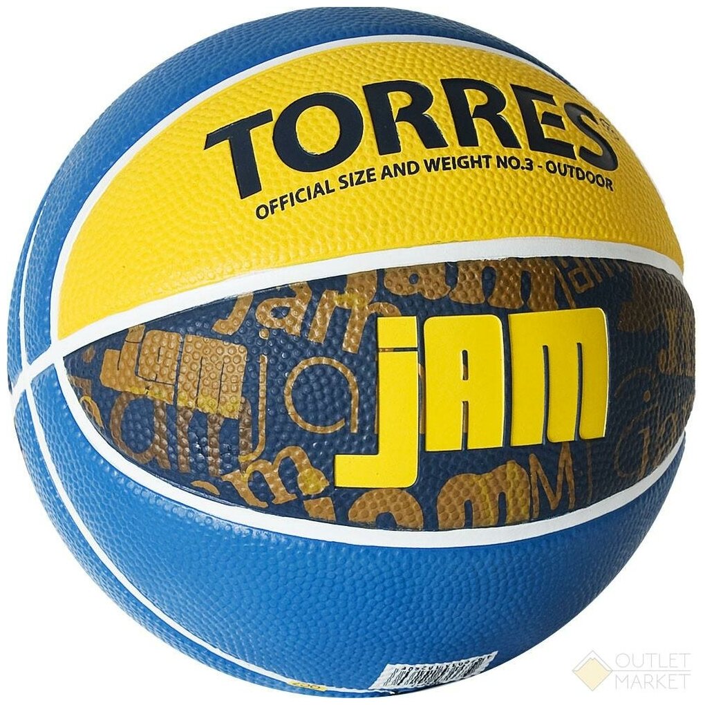 Мяч баскетбольный TORRES Jam, арт. B02043, размер 3, резина, нейлоновый корд, бутиловая камера, синий-желтый-голубой