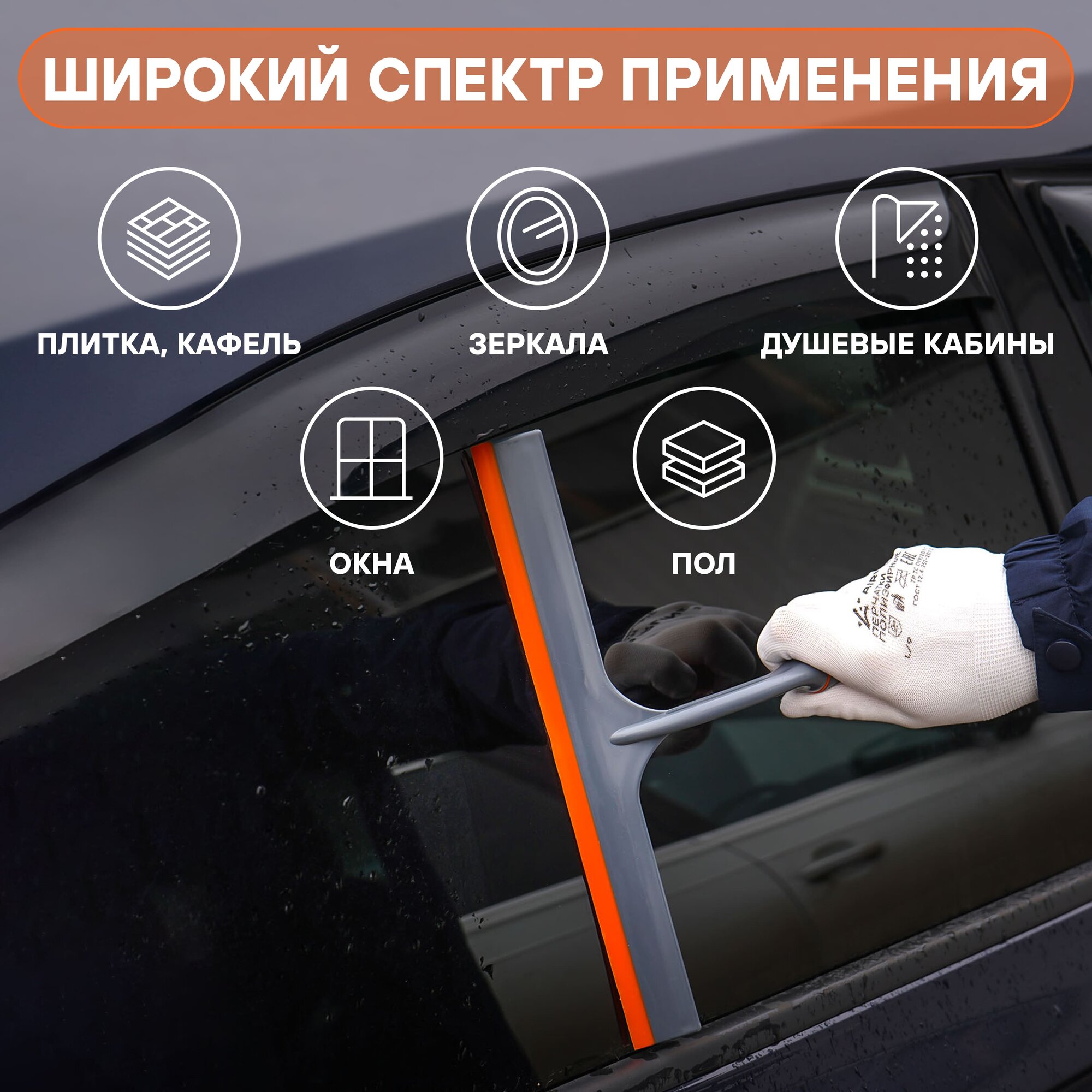 Скребок для сгона воды 30см черно-оранжевый AIRLINE AB-M-03