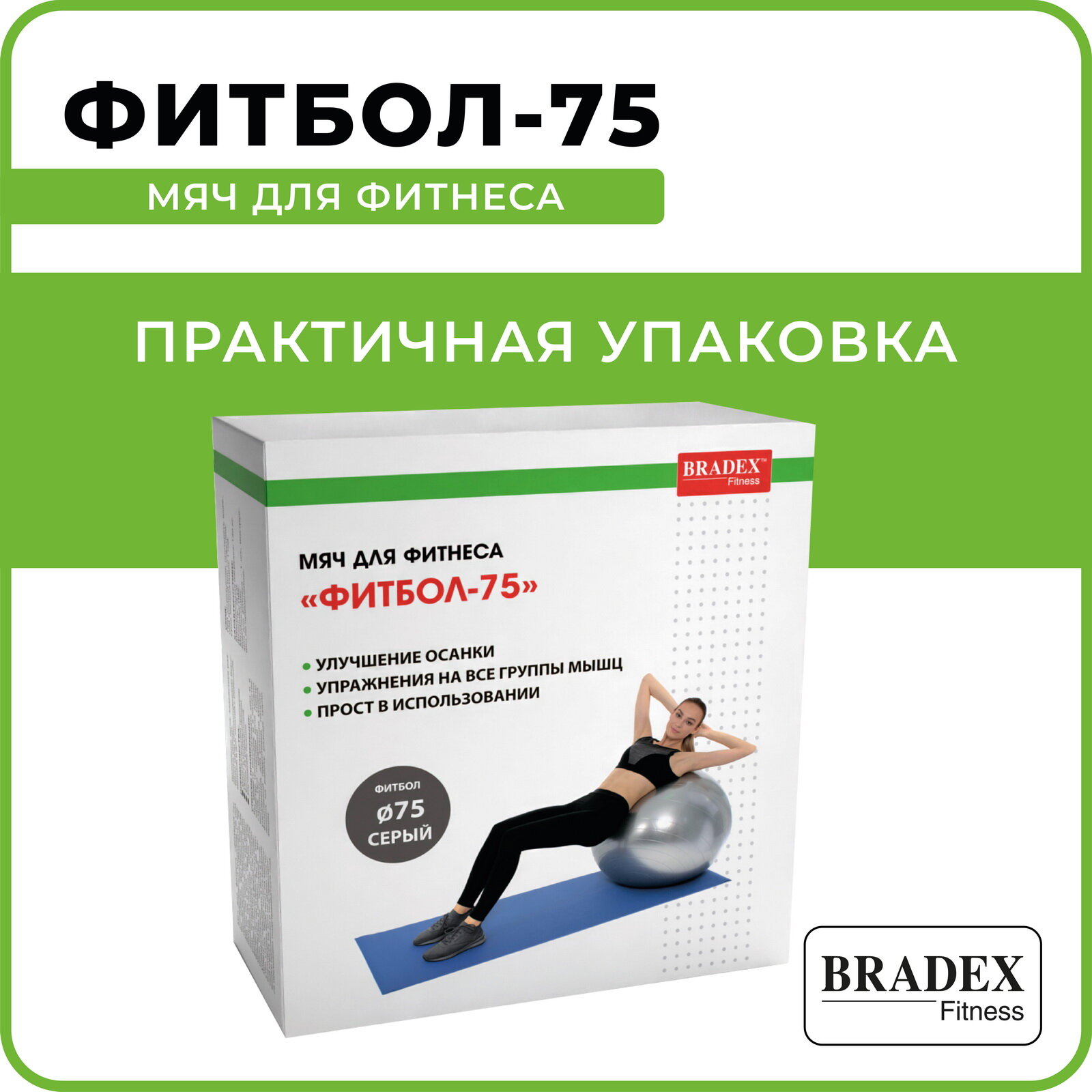 BRADEX Мяч для фитнеса «ФИТБОЛ-75», BRADEX