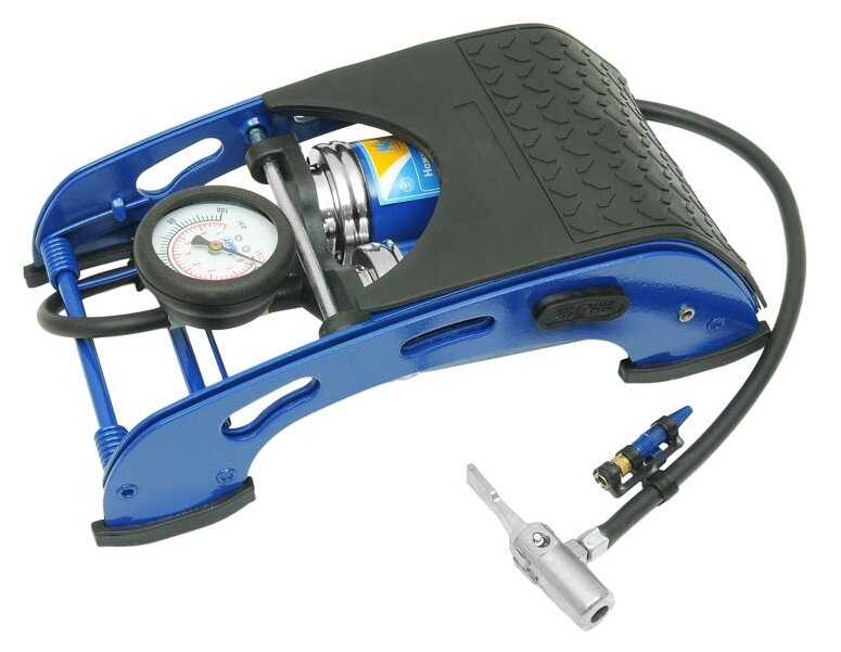 Насос ножной механический. 2 цилиндра (580 см?) с манометром. 7 Атм. три дополнительные насадки. в сумке EAN-13: 4260332818452