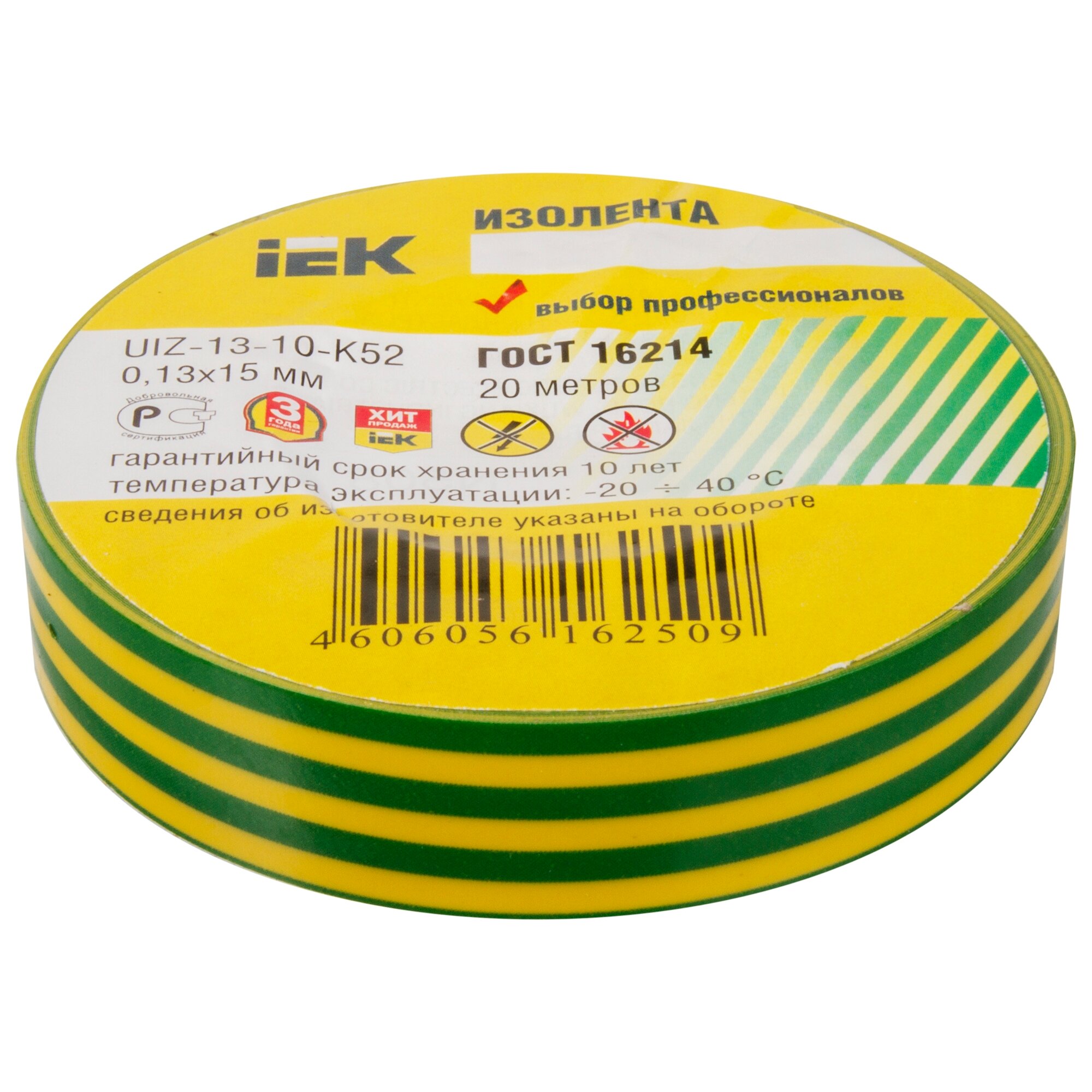 Изолента ПВХ 0.13х15мм (рул.20м) жел./зел. ИЭК UIZ-13-10-K52