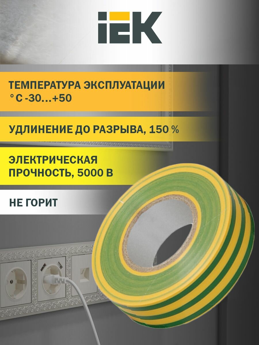 "Изолента IEK 0,13х15 мм желто-зеленая 20 метров"