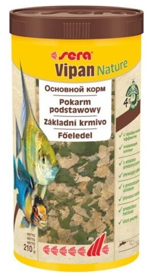 Корм для рыб основной в хлопьях Sera Vipan Nature, 1 л, 210 гр