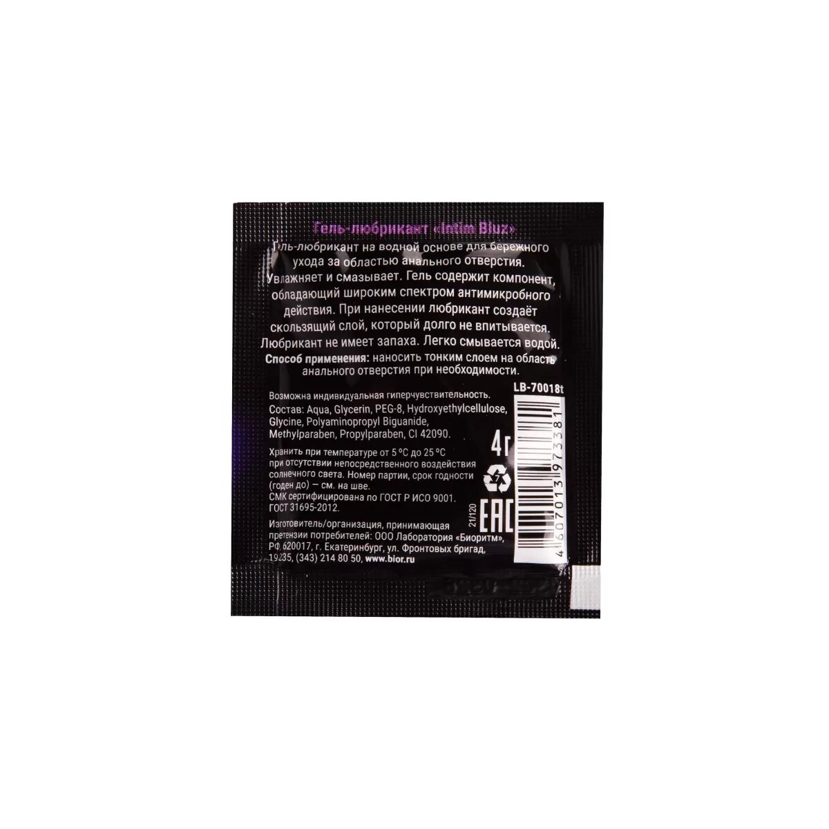 СохранитьГель-лубрикант Intim bluz в одноразовой упаковке - 4 гр. интересное: