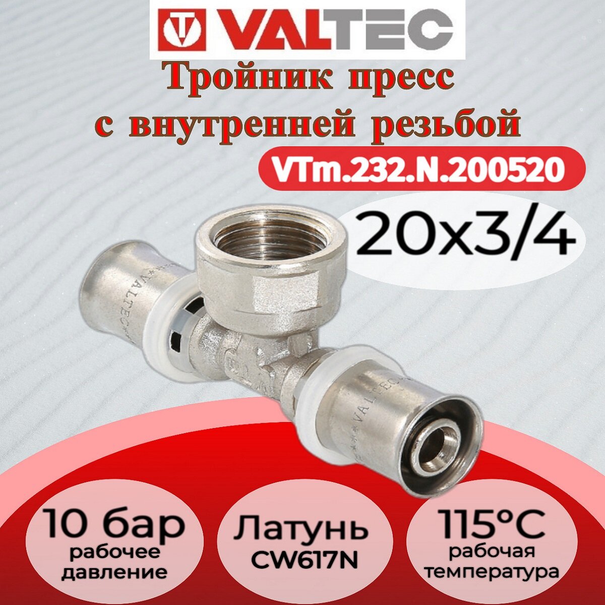 Купить Тройник VALTEC VTm.232.N.200520 20x3/4"x20 пресс – резьба 1 шт.