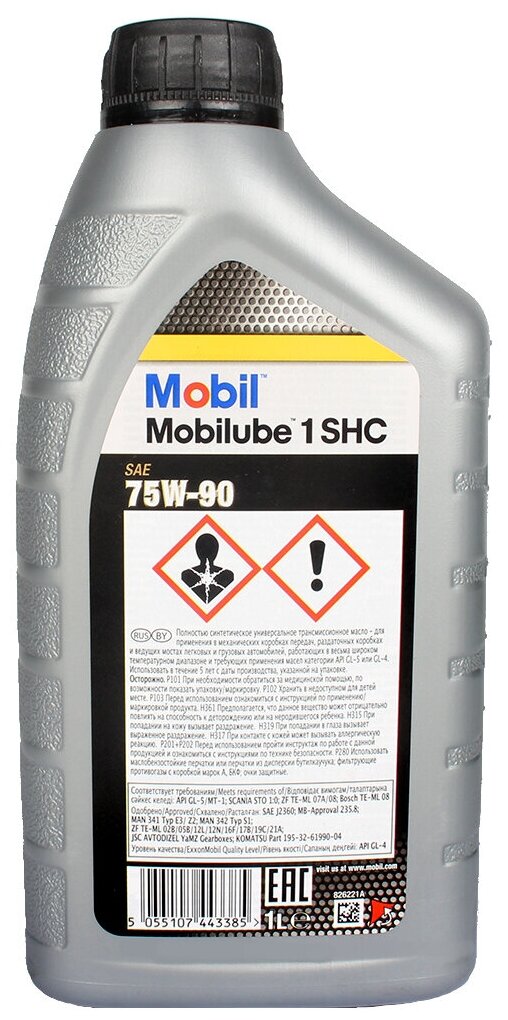 Масло трансмиссионное MOBIL Mobilube 1 SHC, 75W-90, 1 л, 1 шт.