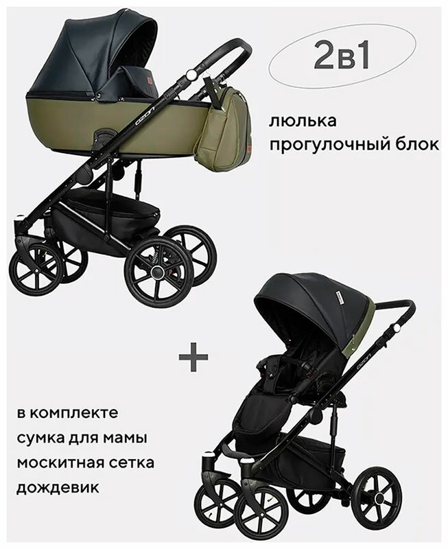 Коляска детская универсальная Riko Basic Ozon 2 в 1 черный/зеленый интересное: