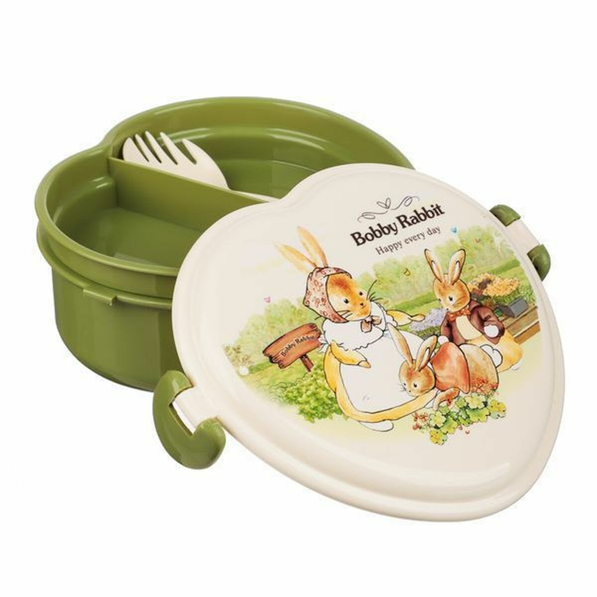 Ланчбокс в форме сердечка "Зайчата"13,5*16см: ложка-вилка, тарелка (пластик) интересное: