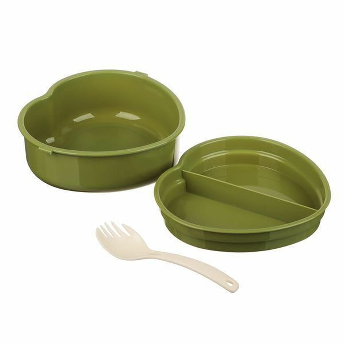 | Отзыв: | Красивый ланч-бокс, два отдельных контейнера в одном, ложка+вилка в одном, но неудобный в использовании в том случае, что выкладывая еду на дно бокса, невозможно закрыть сверху прилагающейся тарелочкой. Если верхнюю тарелочку убрать, то бокс не закрывается. |
