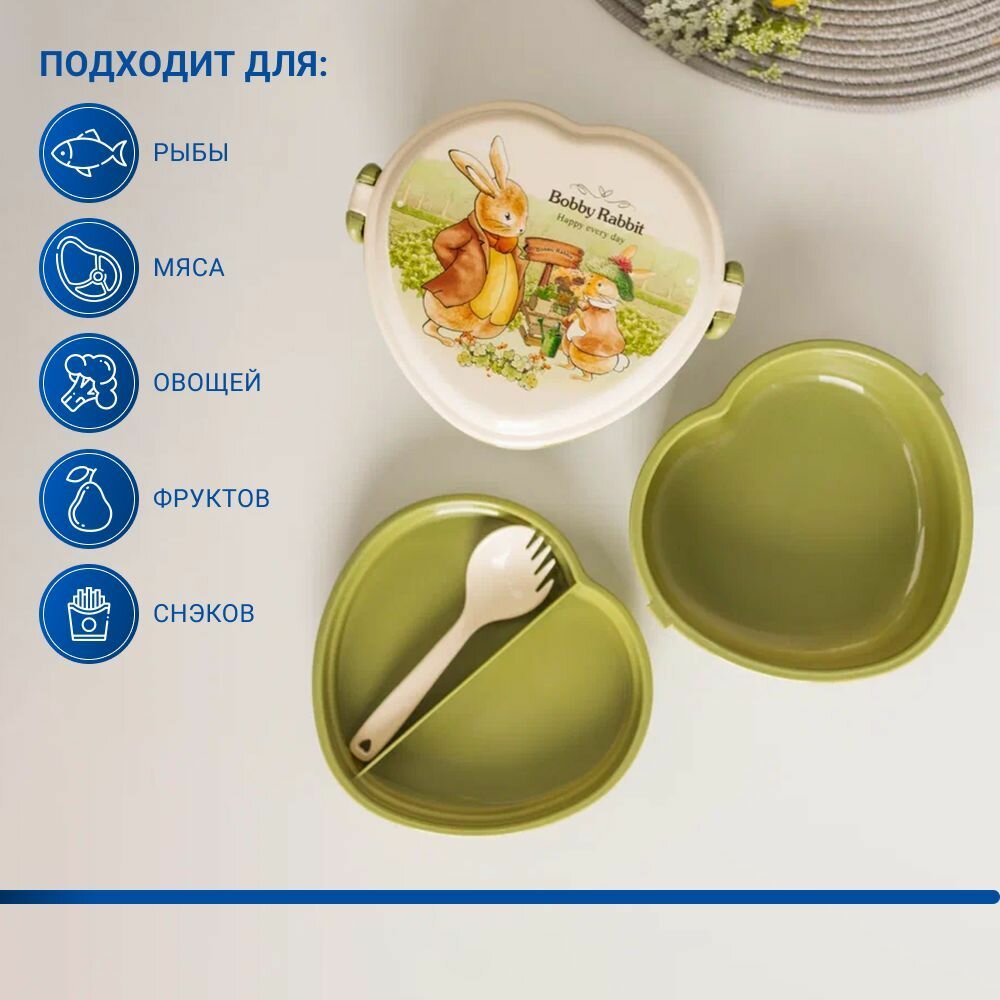 Ланчбокс в форме сердечка, тарелка, ложка-вилка, 13, 5х16 см, пластик, "Зайчата