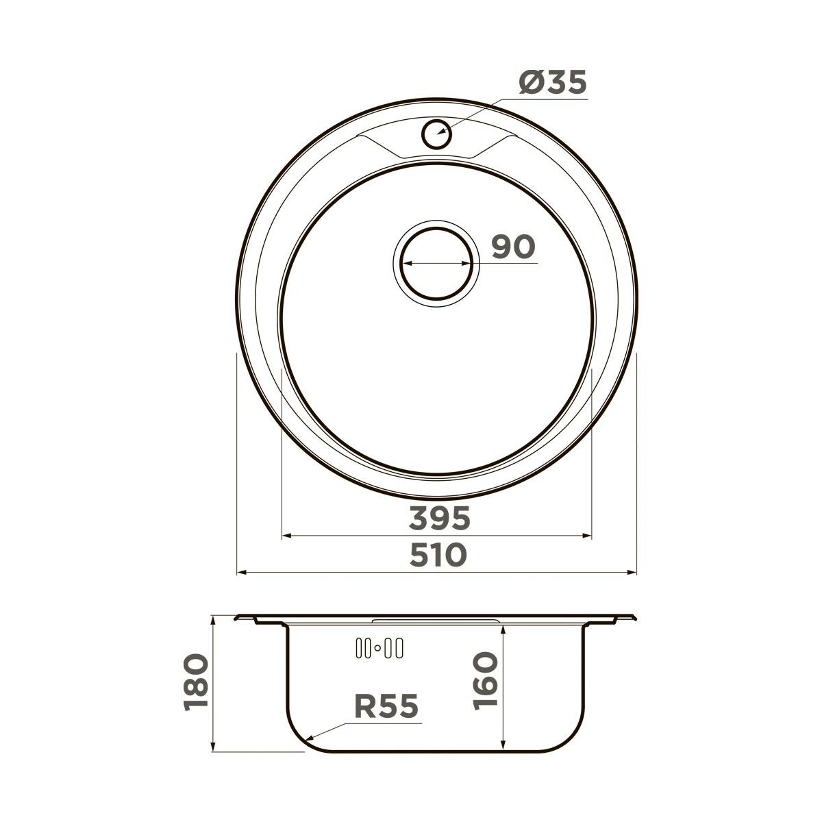 Кухонная мойка Omoikiri Asida 51-IN, круглая, нержавеющая сталь 4993785
