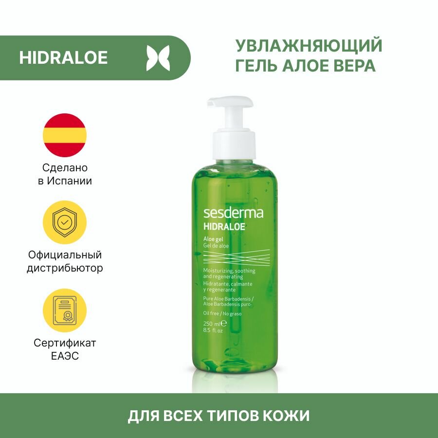 SesDerma / HIDRALOE Aloe gel – Увлажняющий алоэ гель для лица и тела, 250мл