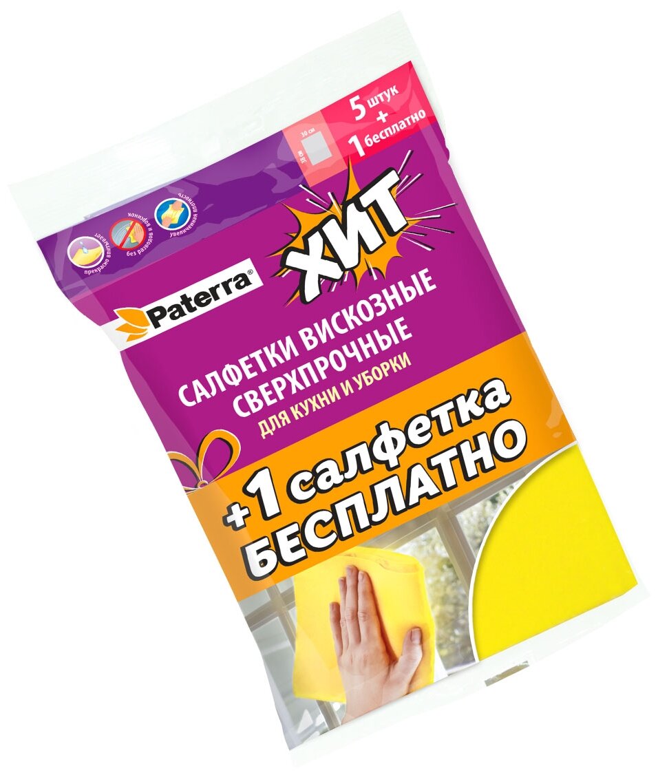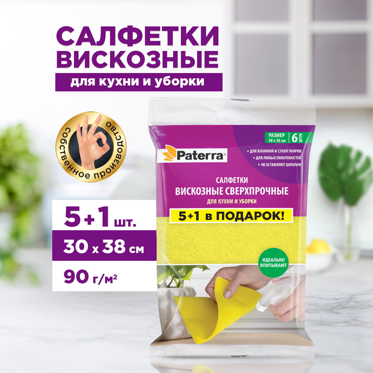 Салфетки вискозные «сверхпрочные» для кухни и уборки, 30 х 38 см, 5 шт. в упаковке, PATERRA