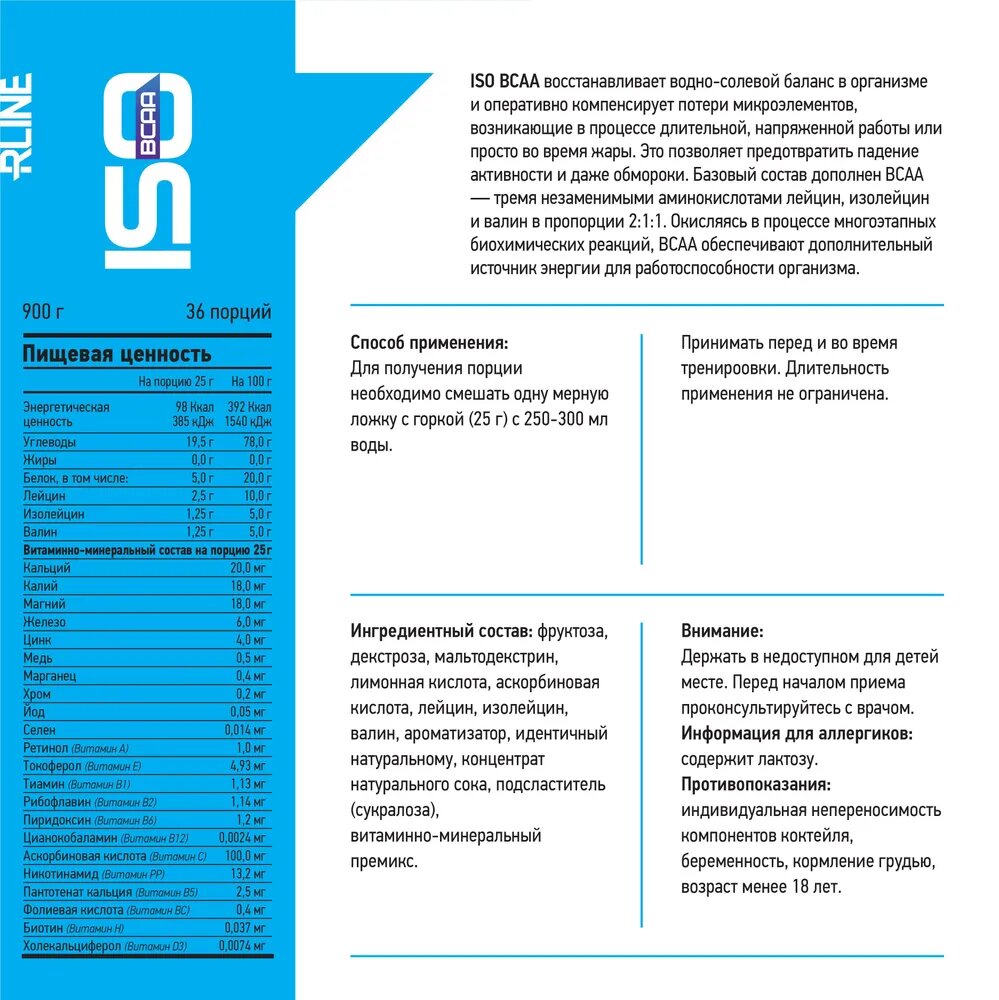 Изотоник с аминокислотами БЦАА RLINE ISO BCAA, Черная смородина, 900 г