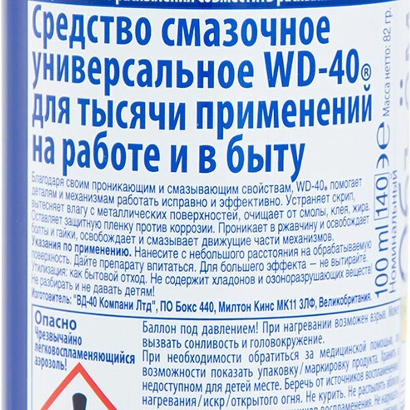 Ниже Вы можете прочитать отзывы на Смазка WD-40 Средство универсальное 0.1 л 1, ознакомится с подробными характеристиками, посмотреть интересные обзоры и фотографии на Смазка WD-40 Средство универсальное 0.1 л 1.