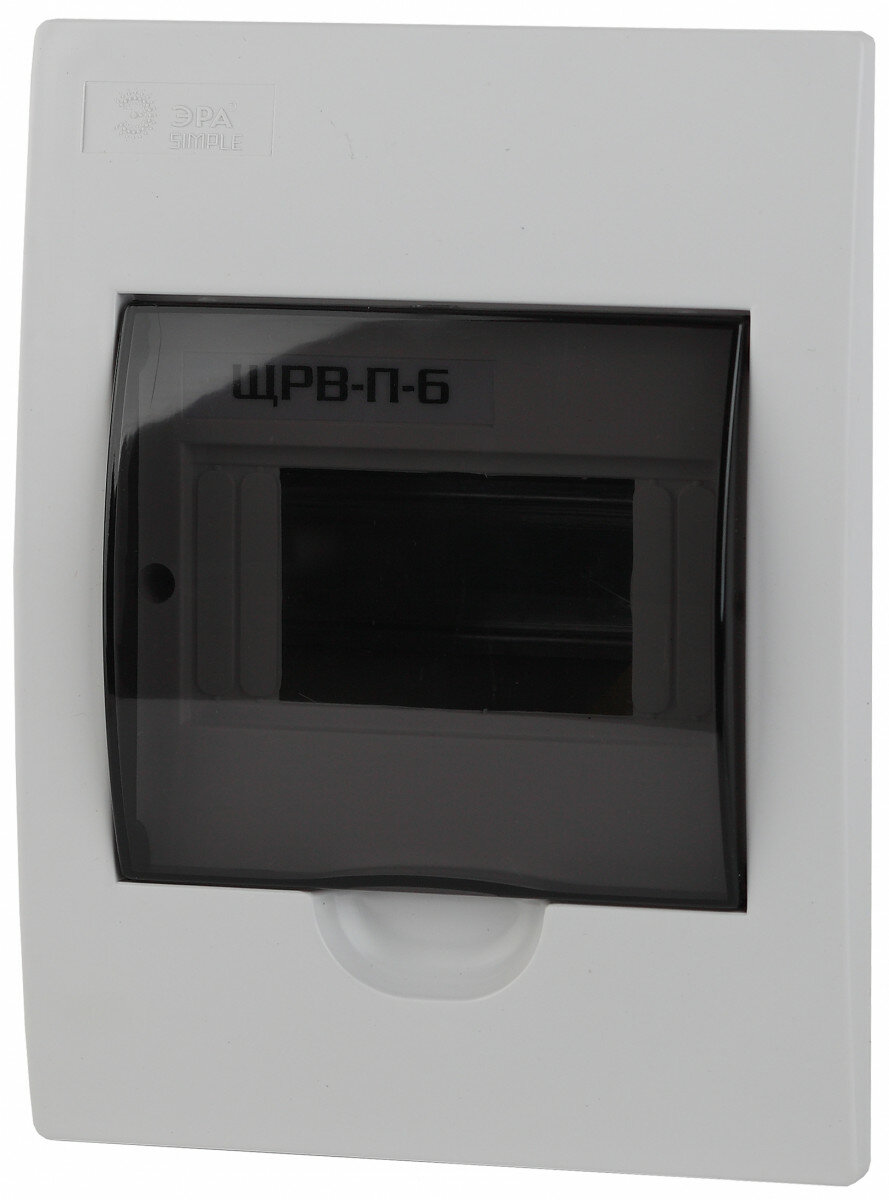 ЭРА SIMPLE бокс (корпус) пластик ЩРВ-П-6 модулей встраиваемый с дымчатой дверцей IP41 6769