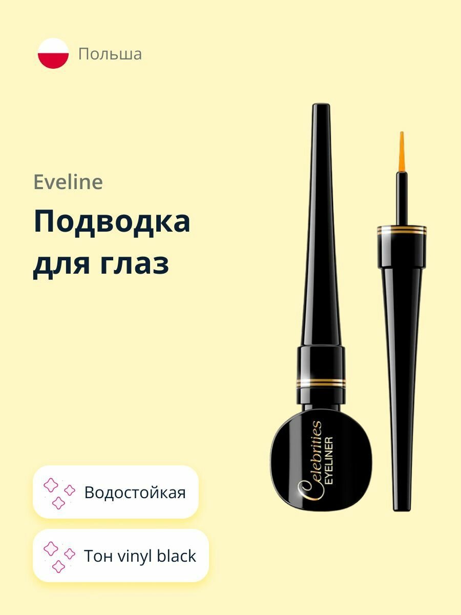 Купить Подводка для глаз EVELINE CELEBRITIES EYELINER водостойкая vinyl black