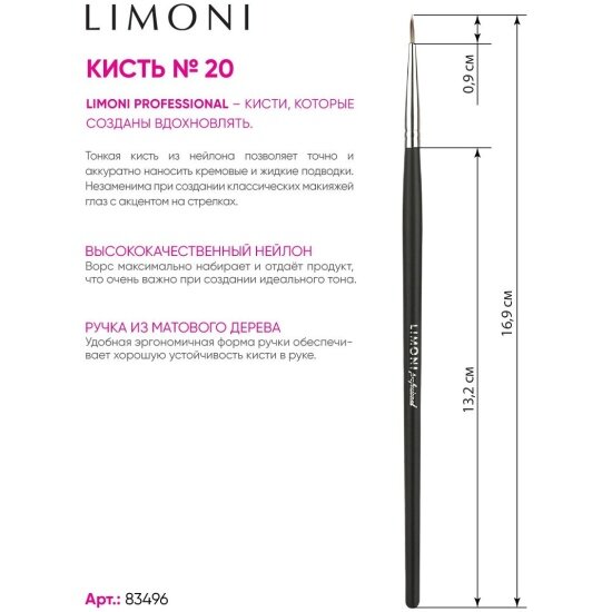 LIMONI №20 Кисть для подводки тонкая (нейлон), Limoni