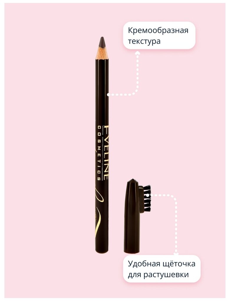 Карандаш для бровей EVELINE «EYEBROW PENCIL», контурный, коричневый