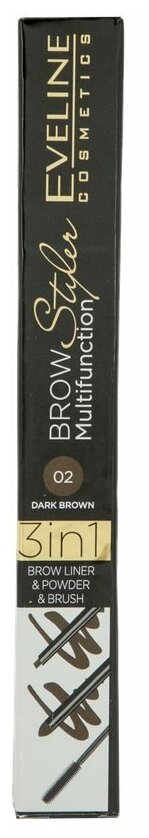 Купить Карандаш для бровей `EVELINE` BROW MULTIFUNCTION STYLER 3 IN 1 тон 02 темно-коричневый
