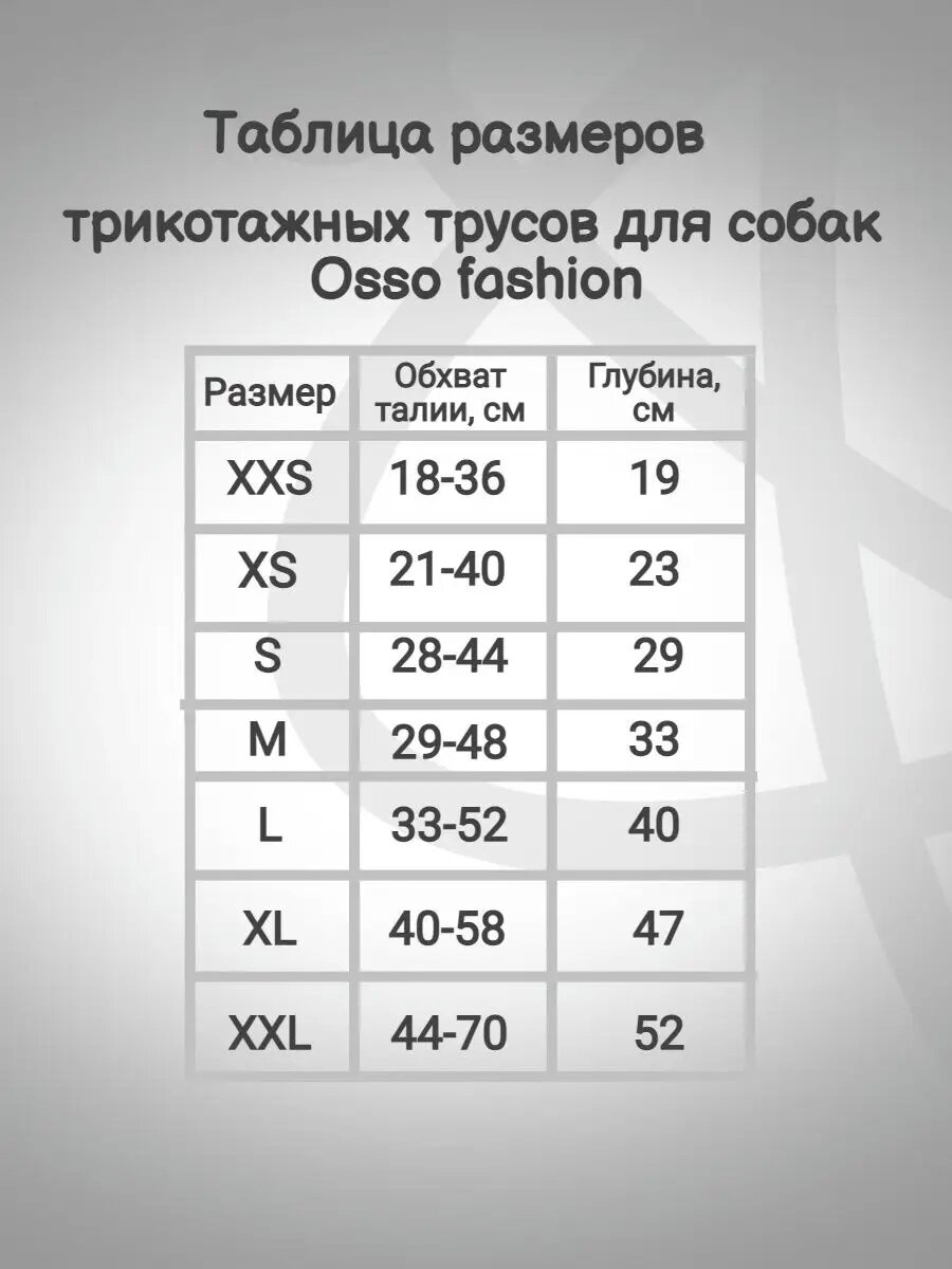 OSSO Трусы для собак трикотажные р. XL Т-1015 0,04 кг 54901 интересное: