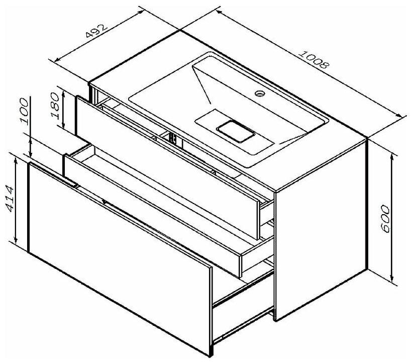 M50AFHX1003GM INSPIRE V2.0, База под раковину, подвесная, 100 см, 3 ящика, push-to-open, графит мато