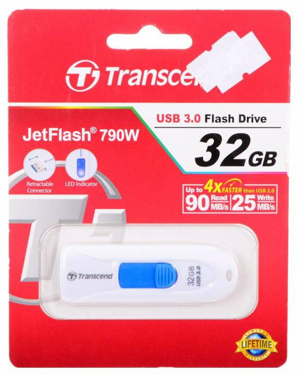 Купить Флешка USB Transcend Jetflash 790 32ГБ, USB3.0, белый [ts32gjf790w]