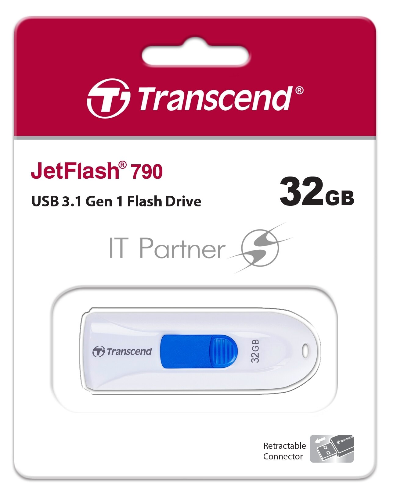 Флеш-карта Transcend JetFlash 790, 32 гб, USB 3,1 G1, бело-синяя (TS32GJF790W)