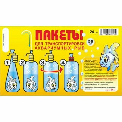 Пакеты для транспортировки аквариумных рыб, размер 24 см, 50 штук.