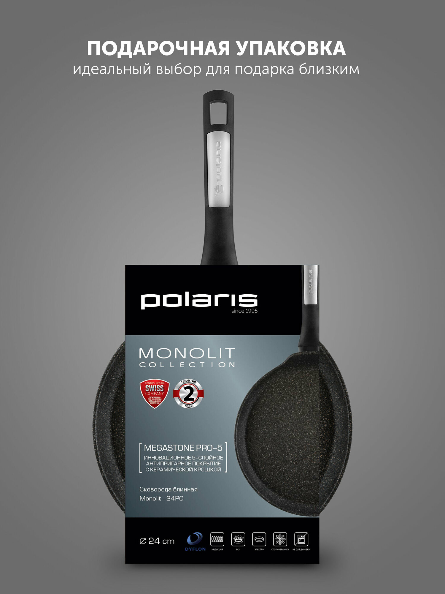 Сковорода блинная POLARIS Monolit 24PC, 24см, без крышки, черный [015267]