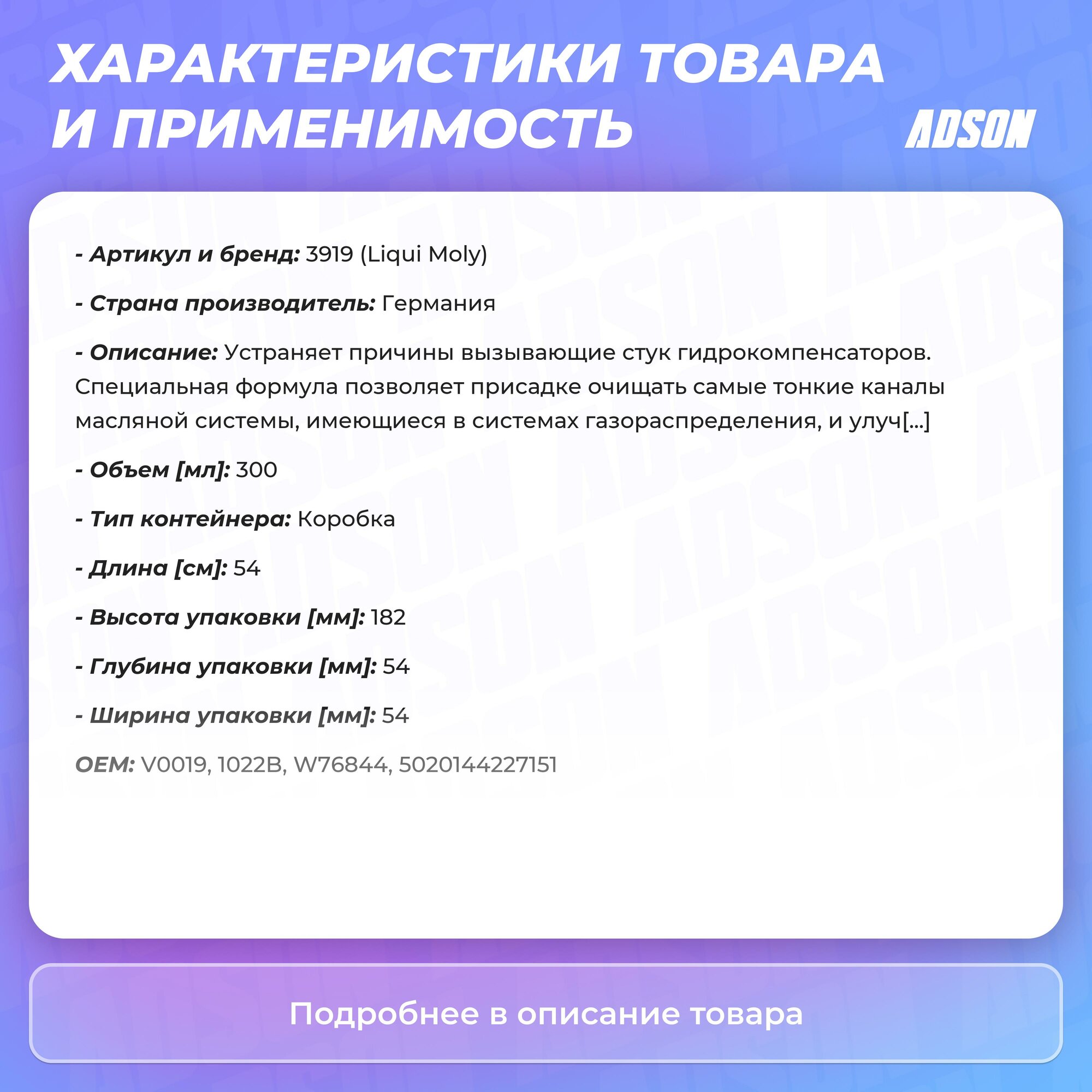 LIQUI MOLY 3919 LiquiMoly Hydro-Stossel-Additiv 0.3L_стоп-шум гидрокомпенсаторов !\ 1шт