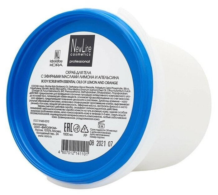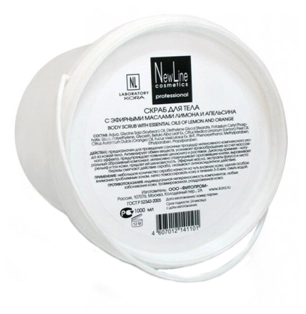 Купить Скраб NEW LINE для тела с эфирными маслами лимона и апельсина, 1000 мл